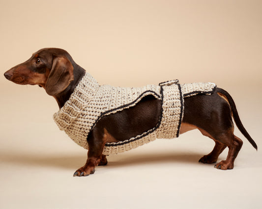 Pull-Poncho Teckel Laine - Vêtement Chien Fait Main Paris - Pull Chien Chaud - Coupe Spéciale Morphologie Allongée - Col Roulé